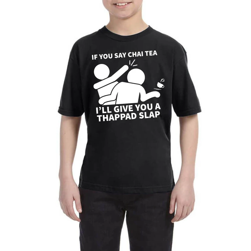 Digital printing is an amazing process that involves your artwork “Chai Tea Thappad Slap” being processed by a computer and then printed directly onto the surface of your product. Digital printing is not a heat transfer or applique, as the ink directly adheres to the fabric of your shirt. Each printing process has its strengths, and our artwork team will weigh these when deciding which to use for your art.
