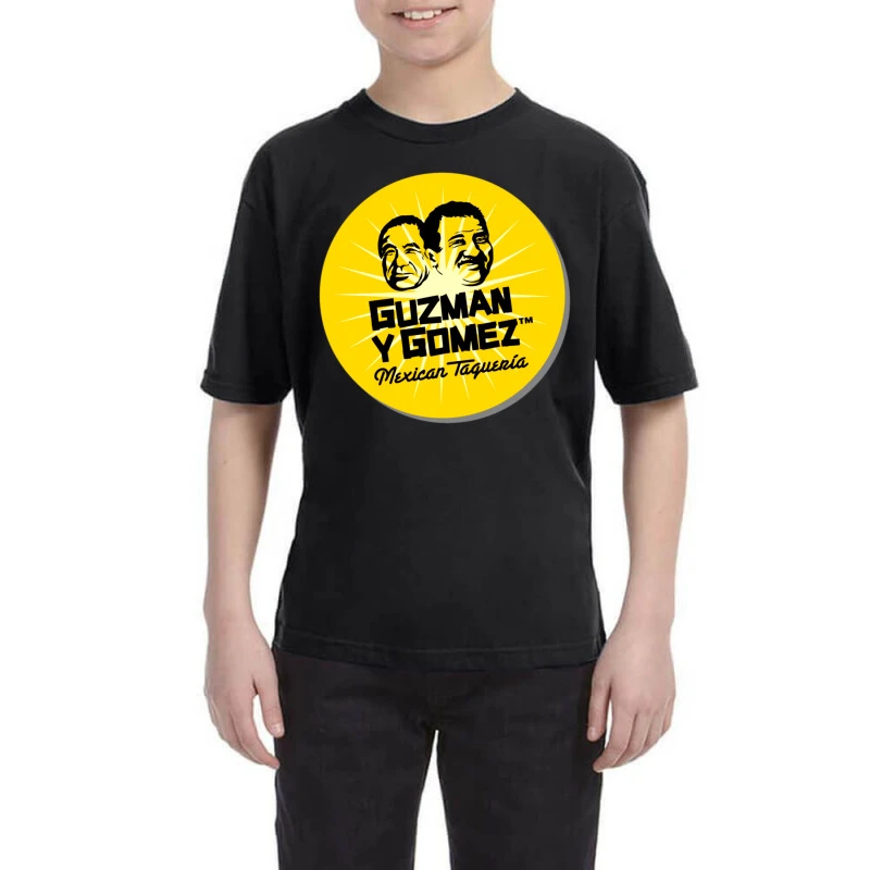Digital printing is an amazing process that involves your artwork “Guzman Y Gomez” being processed by a computer and then printed directly onto the surface of your product. Digital printing is not a heat transfer or applique, as the ink directly adheres to the fabric of your shirt. Each printing process has its strengths, and our artwork team will weigh these when deciding which to use for your art.