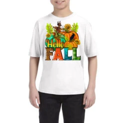 Digital printing is an amazing process that involves your artwork “Hello Fall” being processed by a computer and then printed directly onto the surface of your product. Digital printing is not a heat transfer or applique, as the ink directly adheres to the fabric of your shirt. Each printing process has its strengths, and our artwork team will weigh these when deciding which to use for your art.