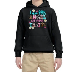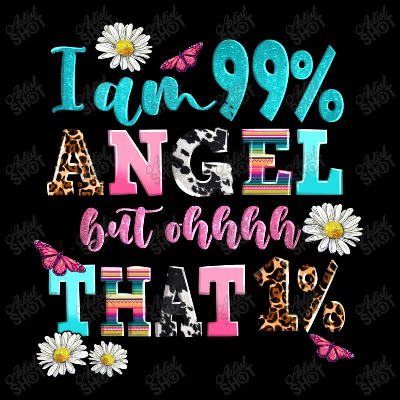 Digital printing is an amazing process that involves your artwork “I Am 99 Angel But Ohh That” being processed by a computer and then printed directly onto the surface of your product. Digital printing is not a heat transfer or applique, as the ink directly adheres to the fabric of your shirt. Each printing process has its strengths, and our artwork team will weigh these when deciding which to use for your art.