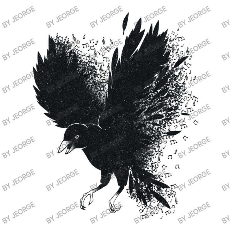Digital printing is an amazing process that involves your artwork “Melting Crow Musical Notes” being processed by a computer and then printed directly onto the surface of your product. Digital printing is not a heat transfer or applique, as the ink directly adheres to the fabric of your shirt. Each printing process has its strengths, and our artwork team will weigh these when deciding which to use for your art.