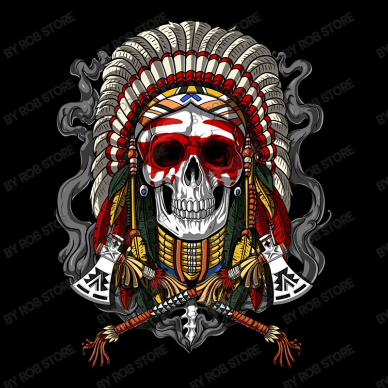 Plot Printing Consists of both Flock and Flex Print, This process transfers your artwork “Native American Chief Skull Indian”