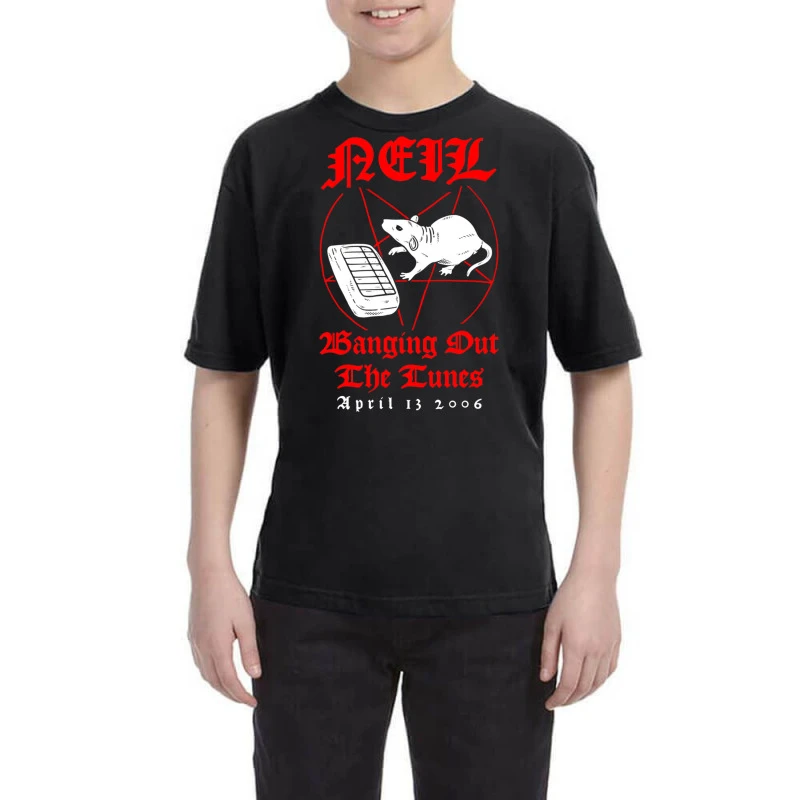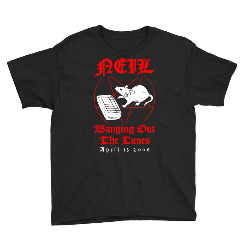 Digital printing is an amazing process that involves your artwork “Neil Banging Out The Tunes” being processed by a computer and then printed directly onto the surface of your product. Digital printing is not a heat transfer or applique, as the ink directly adheres to the fabric of your shirt. Each printing process has its strengths, and our artwork team will weigh these when deciding which to use for your art.