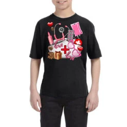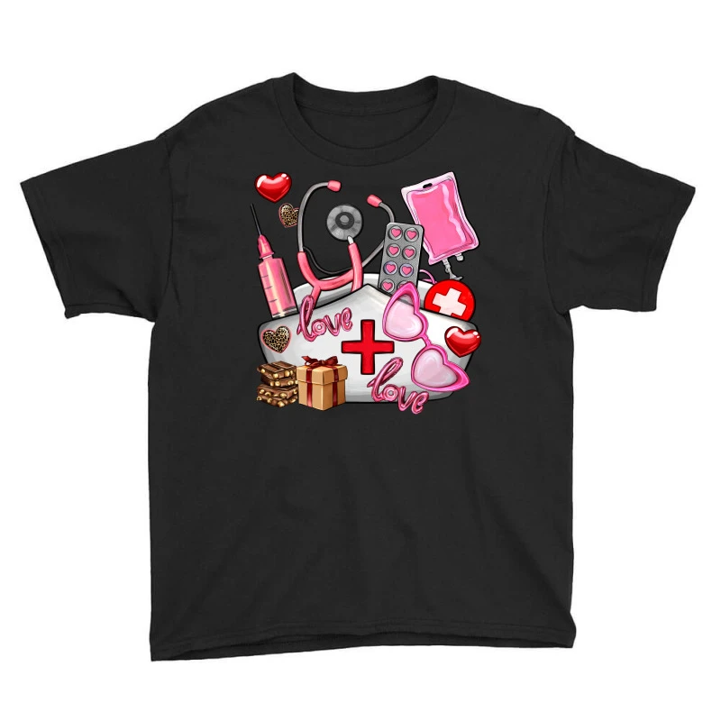 Digital printing is an amazing process that involves your artwork “Nurse Valentines Day Love” being processed by a computer and then printed directly onto the surface of your product. Digital printing is not a heat transfer or applique, as the ink directly adheres to the fabric of your shirt. Each printing process has its strengths, and our artwork team will weigh these when deciding which to use for your art.