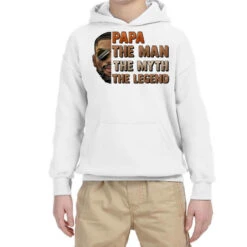 Digital printing is an amazing process that involves your artwork “Papa The Man Myth Legend” being processed by a computer and then printed directly onto the surface of your product. Digital printing is not a heat transfer or applique, as the ink directly adheres to the fabric of your shirt. Each printing process has its strengths, and our artwork team will weigh these when deciding which to use for your art.