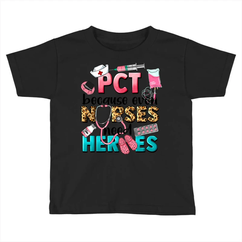 Digital printing is an amazing process that involves your artwork “Pct Because Nurses Need Heroes” being processed by a computer and then printed directly onto the surface of your product. Digital printing is not a heat transfer or applique, as the ink directly adheres to the fabric of your shirt. Each printing process has its strengths, and our artwork team will weigh these when deciding which to use for your art.