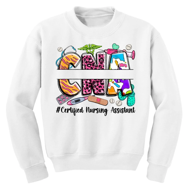 Plot Printing Consists of both Flock and Flex Print, This process transfers your artwork “Personalized Cna Nurse”