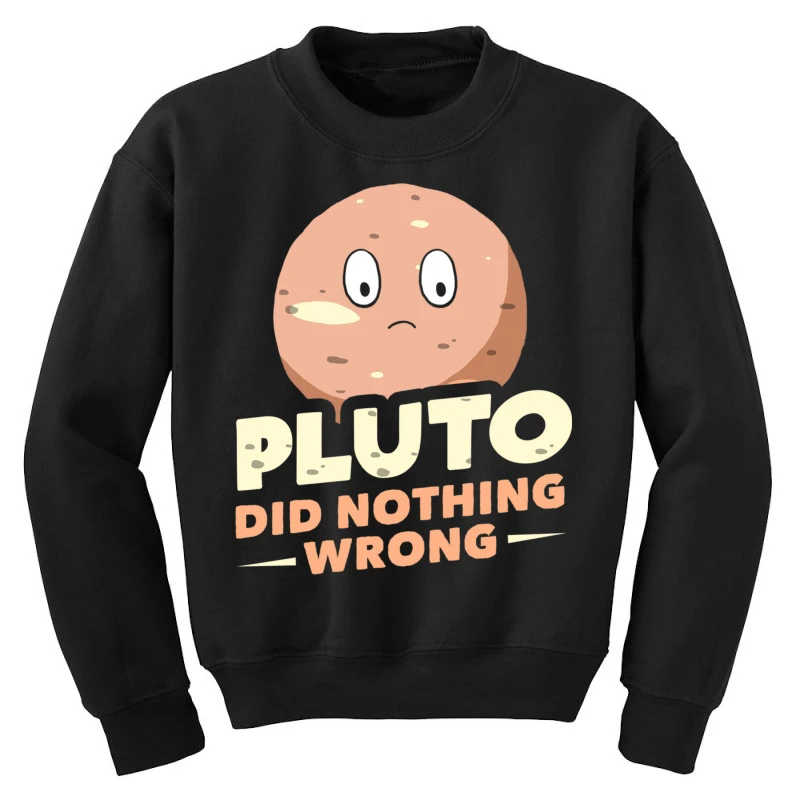 Plot Printing Consists of both Flock and Flex Print, This process transfers your artwork “Pluto Did Nothing Wrong”