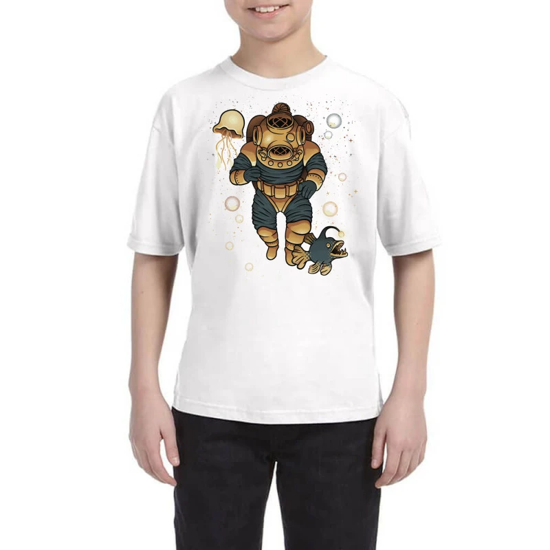 Digital printing is an amazing process that involves your artwork “Scuba Diver Universe” being processed by a computer and then printed directly onto the surface of your product. Digital printing is not a heat transfer or applique, as the ink directly adheres to the fabric of your shirt. Each printing process has its strengths, and our artwork team will weigh these when deciding which to use for your art.