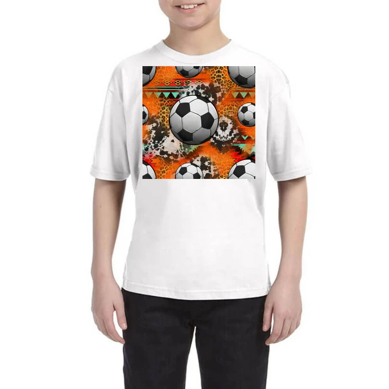Plot Printing Consists of both Flock and Flex Print, This process transfers your artwork “Soccer Seamless Pattern” from a special foil through an immense amount of pressure and heat. Flex images are smooth, a little plastic like and a tad bit glossy. Flock images have a fuzzy velvet-like texture and appear slightly more elevated. Think of drawing just the shadows and how that would appear without color. 3 colors plus the color of the garment itself is used to print.