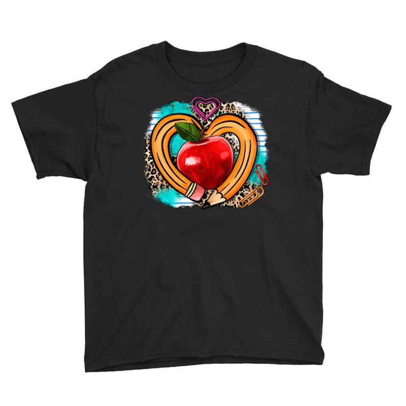 Digital printing is an amazing process that involves your artwork “Teacher Heart Pen” being processed by a computer and then printed directly onto the surface of your product. Digital printing is not a heat transfer or applique, as the ink directly adheres to the fabric of your shirt. Each printing process has its strengths, and our artwork team will weigh these when deciding which to use for your art.