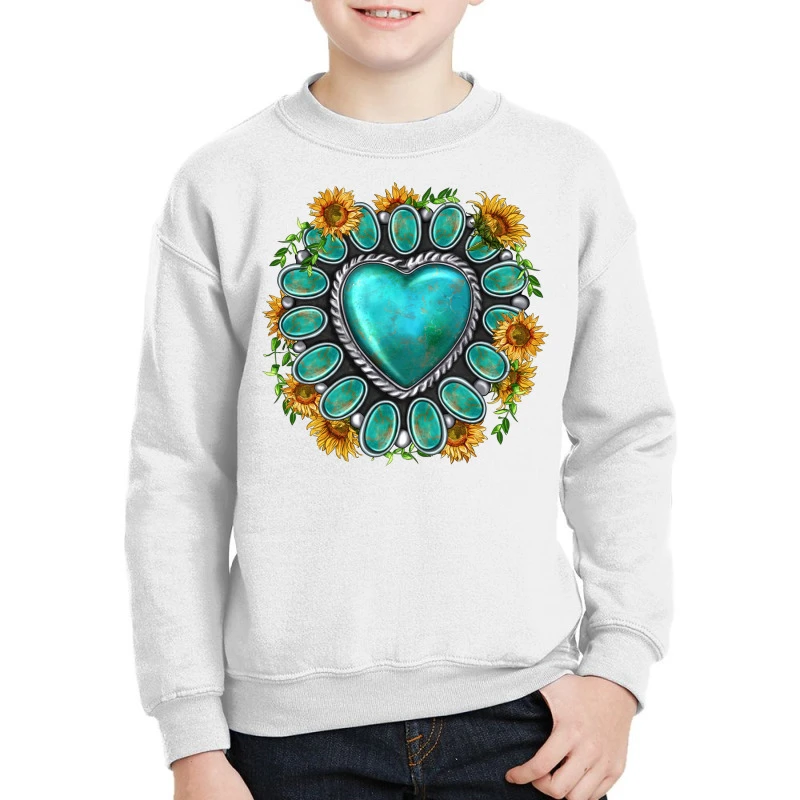 Plot Printing Consists of both Flock and Flex Print, This process transfers your artwork “Western Turquoise Gemstone With Sunflowers”