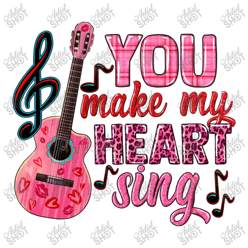 Digital printing is an amazing process that involves your artwork “You Make My Heart Sing” being processed by a computer and then printed directly onto the surface of your product. Digital printing is not a heat transfer or applique, as the ink directly adheres to the fabric of your shirt. Each printing process has its strengths, and our artwork team will weigh these when deciding which to use for your art.